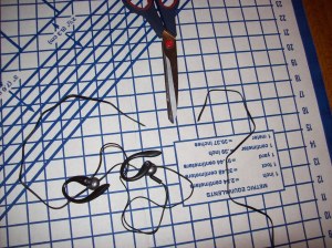 Sewing Tip #742: When sitting on the floor cutting out a pattern, if you are listening to your iPod make sure the headphone cord is out of the way first.